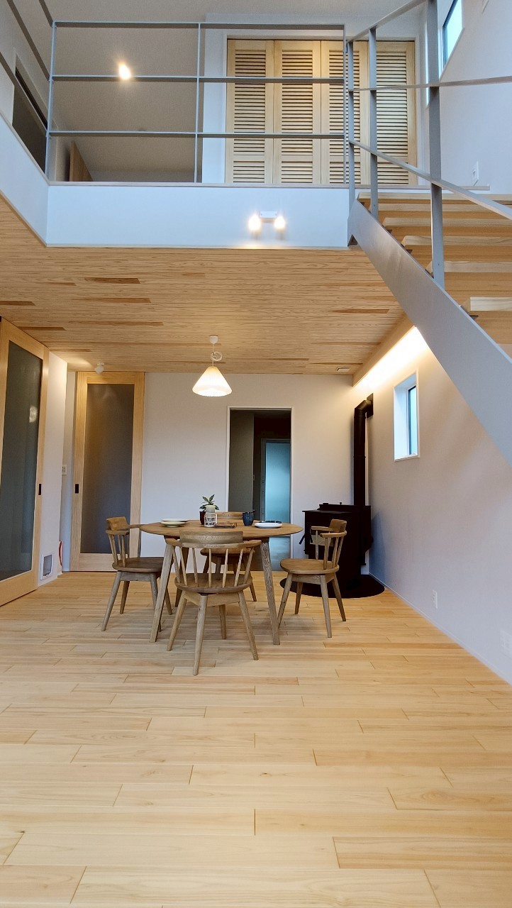 ペレットストーブをつけることで吹抜けの暖房に活躍してくれます。